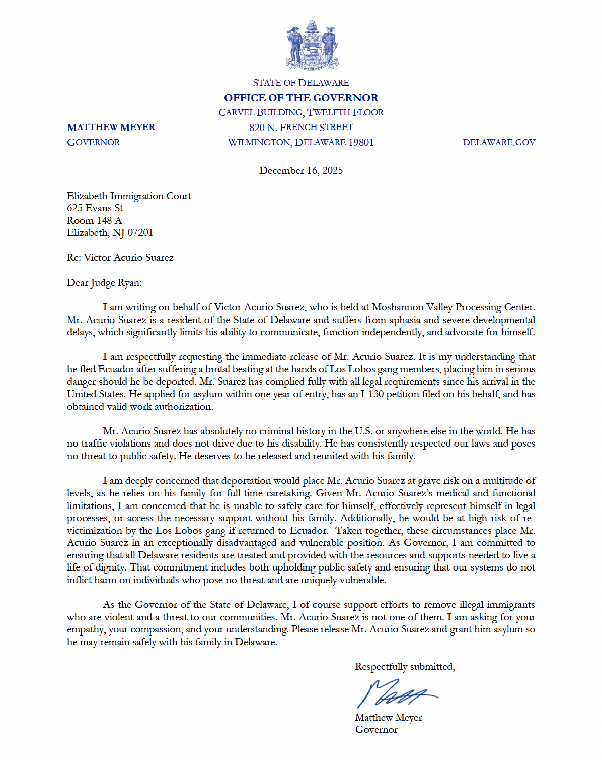 Delaware’s Governor, Matt Meyer, has been an outspoken critic of the Trump regime and is calling for Victor’s immediate release, but further legislation is still needed to close the loophole that allows local agencies to assist ICE with unlawful kidnappings and detentions throughout the country.